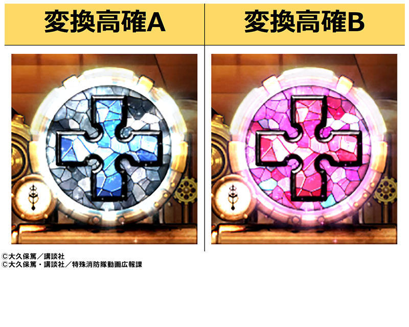 前兆中の十字目変換=アドラリンクが発生するため、変換確率は抑えめになっています。