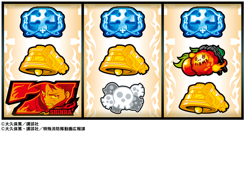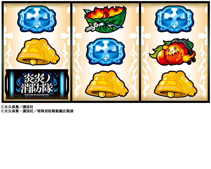 本機は通常時も炎炎激闘中も「リプ小V」の共通1枚役が「十字目変換」の主な契機となりますが、