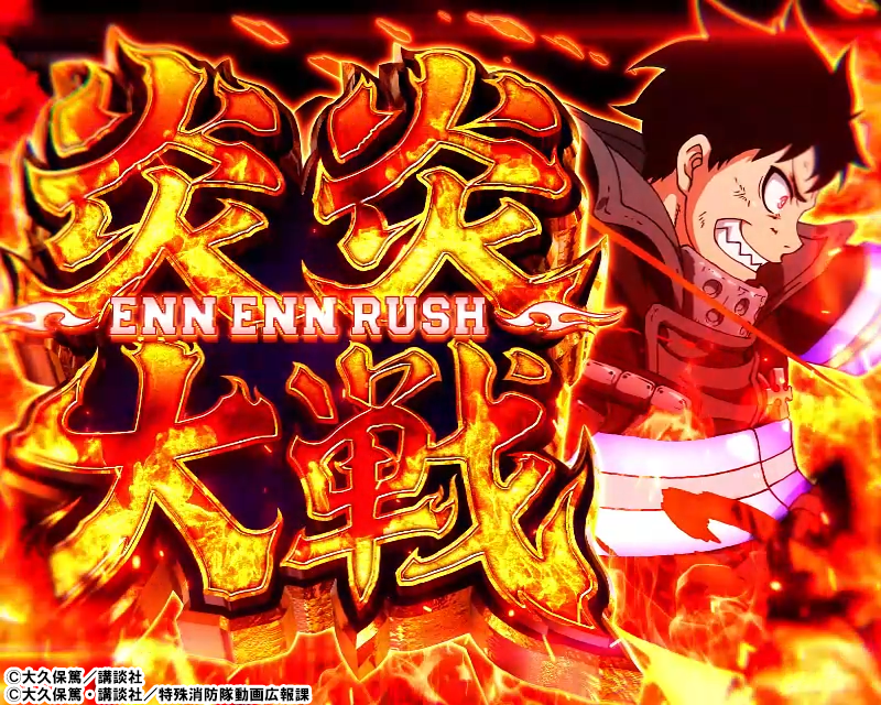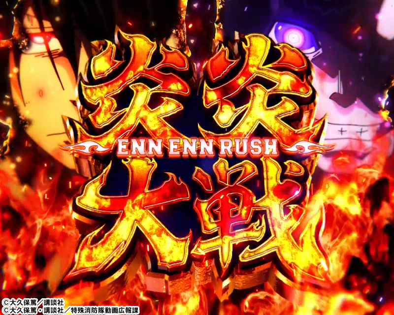 さらに「炎炎大戦」中のボーナス当選時は「炎炎BONUS」以上濃厚!?となり、ボーナス終了後は潜伏無しで「炎炎大戦」がループするんです!