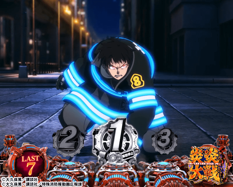 成立フラグによる抽選でボーナスに当選した際に押し順ナビ演出が出る可能性がありますので、炎炎大戦中は常に十字目出現に期待してプレイしてくださいね♪